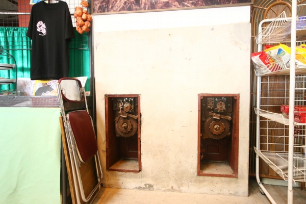 用途は分からないが、壁には当時の機械がそのまま埋め込まれている。